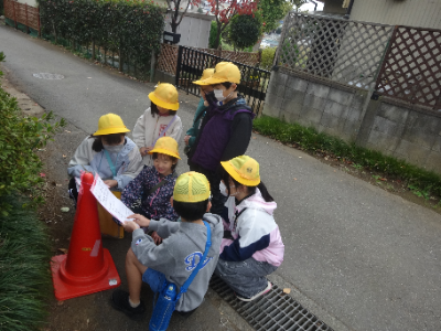 今日は、全校でウォークラリーです。学校回りに設置されたチェックポイントを、グループごとにまわります。
