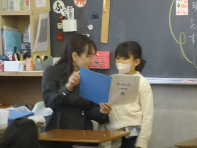 2学期がんばったことを、一人一人担任の先生からお話されて、通知表が手渡されます。