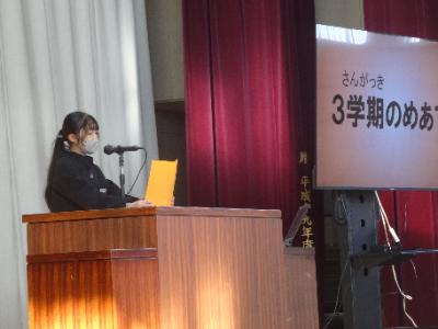 今日から、3学期が始まります。始業式では、児童代表の5年生が、3学期の目標、最高学年に向けた目標をしっかり発表します。