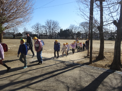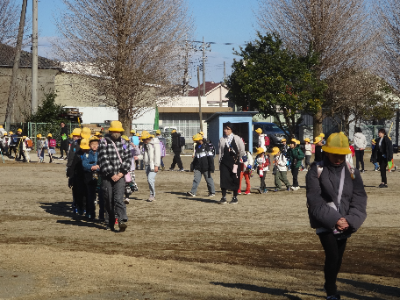 一斉下校です。今年も、班長さんを先頭に、安全に下校します。先生たちも付き添って見守ります。