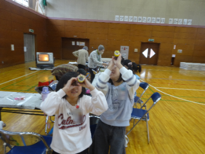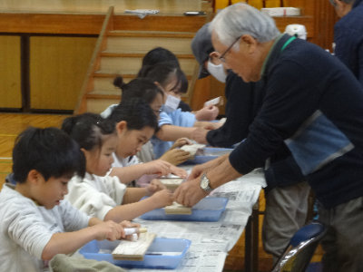 まろにえ会の皆さんから、万華鏡、まが玉、グライダー、割りばし鉄砲のつくり方を教わっています。