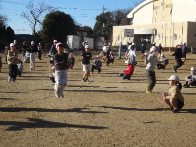 今朝のげんきタイムは、お友達とペアになって、後ろ跳びやあや跳びの回数を確認しています。