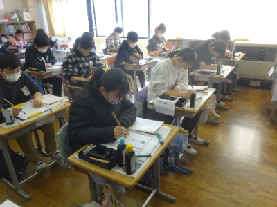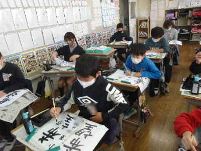5年生、6年生は、書写の時間です。一文字一文字、気持ちを込めてていねいに書きあげます。