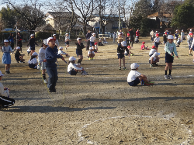 今朝のげんきタイムでは、お友達とペアになって後ろ跳びやあや跳びの跳べた回数を確認します。