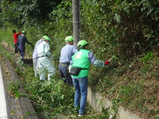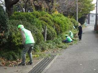 第6回活動 正門横の通学路沿いの植込みの整備をしてくださっています。